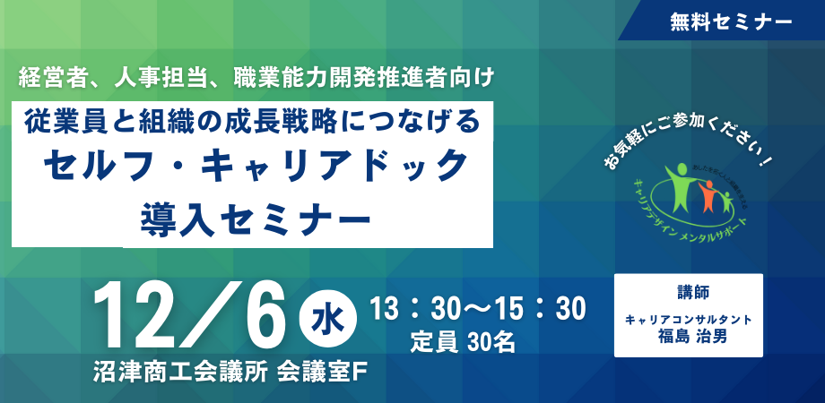 日本で研究・開発されてきたキャリアコンサルティングに基づき、働く人たちのキャリア形成をご支援いたします。高度成長期においては、働く人のキャリア形成の多くは企業に委ねられていたのかもしれません。しかし時代の変化が激しく、また人が人生において働く期間が長期化していること、個性化や多様な価値観が認められるようになり、キャリアは個人がそれぞれ自主的に創造することが求められるようになりました。職業能力開発促進法では、労働者は自らの職業生活設計を行い、職業能力の向上に努めなくてなならず、事業主は労働者の職業能力開発を支援する立場であることが明記されています。労働者からキャリアコンサルティングの要望があれば、その機会を提供する義務もあります。弊社はキャリア形成に関する研修や個別面談などを通じて働く人たちのキャリア形成支援を行い、組織としても成果を上げられるようご支援いたします。ジョブ・カードを使ったキャリアコンサルティング面談、セルフ・キャリアドックの導入支援や運営もご支援いたします。